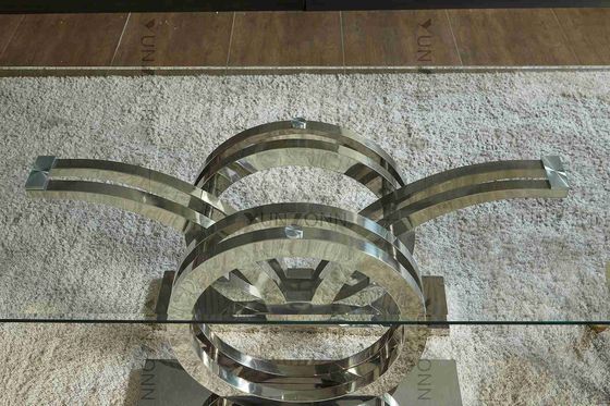 Jest to stół jadalny z naszej niskiej luksusowej serii srebrnej.Wykonany jest ze szkła hartowanego i podstawy ze stali nierdzewnej.Baza przyjmuje projekt mewy, prosty i nowatorski.Stół może pomieścić 8-10 znajomych na obiad lub małe rodzinne spotkania.W celu zmniejszenia przestrzeni opakowanie zostało podzielone na opakowania szklane i bazowe, co jest wygodniejsze w transporcie.