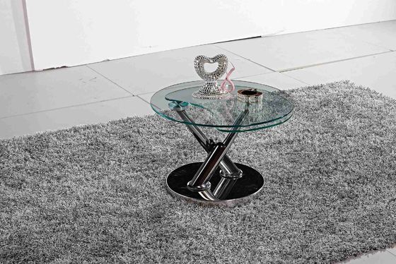 Okrągły szklany blat z małym stolikiem bocznym X Metal Base