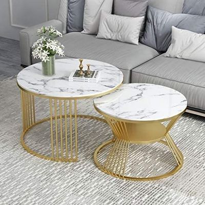 Marmurowy szklany blat Okrągły stolik kawowy ze złotym stolikiem do przechowywania strajku