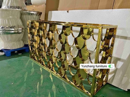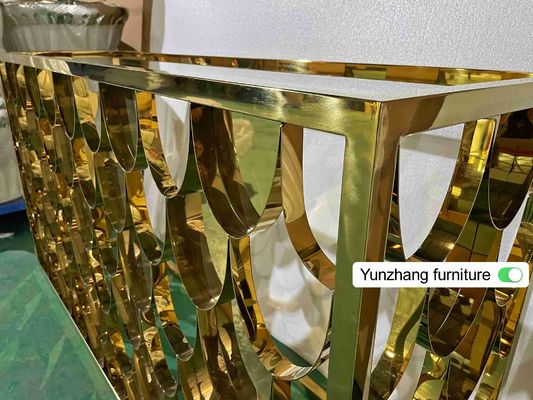 Luksusowa, łuskowata konstrukcja w kolorze złotym, metalowa konsola stołowa