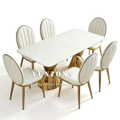 P3: Jaki jest materiał twoich produktów? A3: Stół i krzesło z ramy ze stali nierdzewnej,szkło hartowane na stole; marmur lub drewno.Poduszki krzeseł wykonane są z gąbek o wysokiej gęstości i wysokiej jakości skóry lub tkaniny.