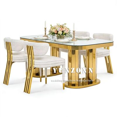 | Nazwa produktu: | Hurtownia prostokątny bankietowy lustrzany szklany blat ze stali nierdzewnej złoty stół weselny wydarzenia hotele meble do jadalni |