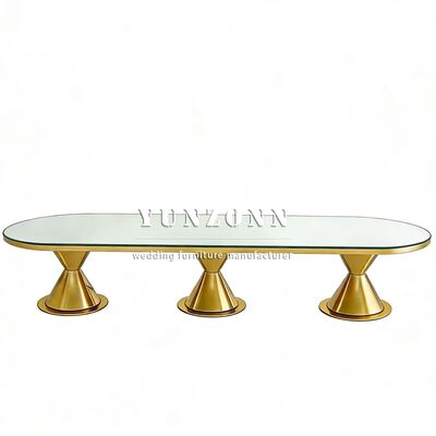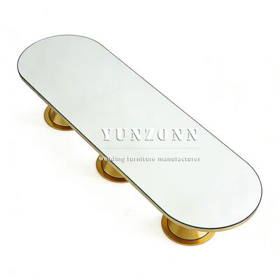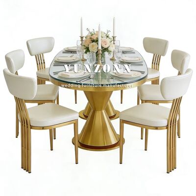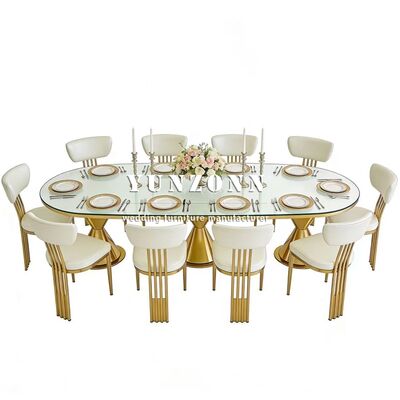 | Nazwa produktu: | Luksusowy nowy produkt nowoczesny złoty stół jadalniany weselny ze stali nierdzewnej z owalnym blatem z hartowanego szkła, meble hotelowe |