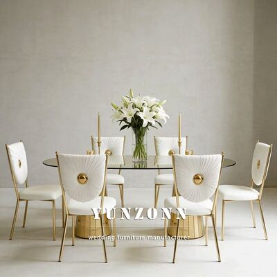 P3: Jaki jest materiał twoich produktów? A3: Stoły i krzesła są wykonane z ramy ze stali nierdzewnej, twardego szkła lub marmuru lub mdf na powierzchni stołu, co zależy od wyboru.Poduszki krzesła są wykonane z gąbek o wysokiej gęstości i wysokiej jakości skóry lub tkaniny.