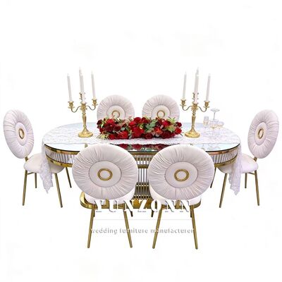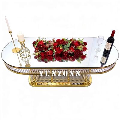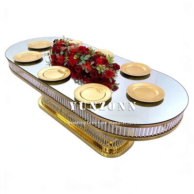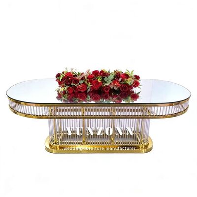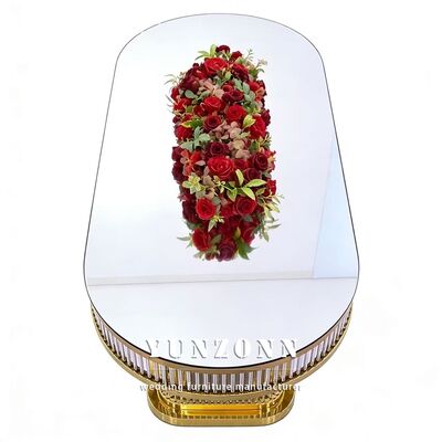 | Nazwa produktu: | Luksusowy, nowoczesny, trwały, owalny, dekoracyjny stół weselny ze stali nierdzewnej z blatem ze szkła hartowanego do restauracji |