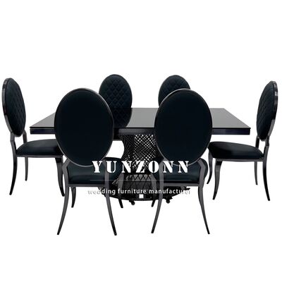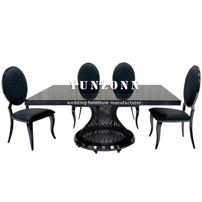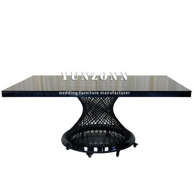 | Nazwa produktu: | Stół bankietowy hotelowy z czarnym blatem szklanym, ze stali nierdzewnej, prostokątny, metalowy stół weselny |