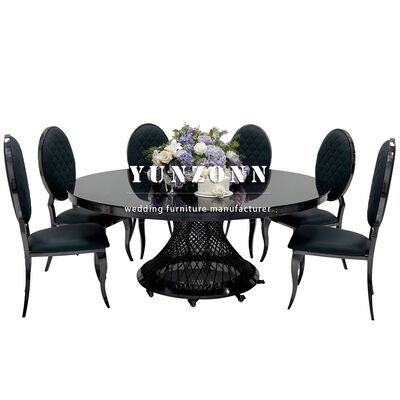 | Nazwa produktu: | Stół bankietowy hotelowy z czarnym blatem szklanym, ze stali nierdzewnej, okrągły, metalowy, mobilny, weselny |