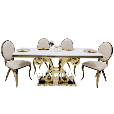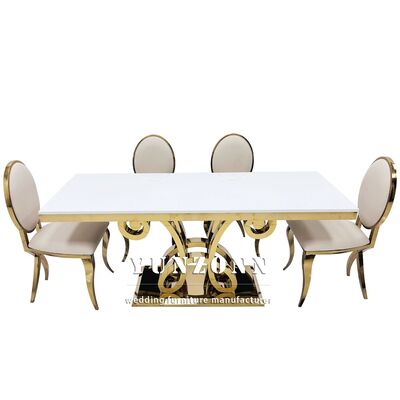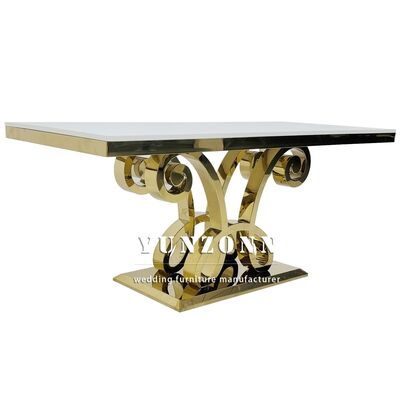 | Nazwa produktu: | Nowy Design Luksusowy Prostokątny Szklany Blat Złota Stal Nierdzewna Stół Weselny na Imprezę |