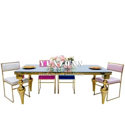 | Nazwa produktu: | Złota ramka ze stali nierdzewnej lusterkowe szkło stolik ślubny 10 osób Stolik ślubny |