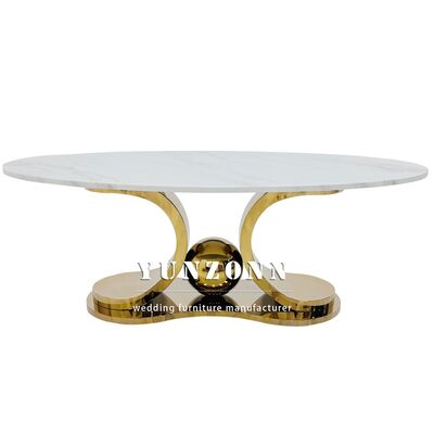 | Nazwa produktu: | Luksusowy stolik kawowy do hotelu z marmurowym blatem i złotą metalową ramą ze stali nierdzewnej, owalny stolik do herbaty i kawy |