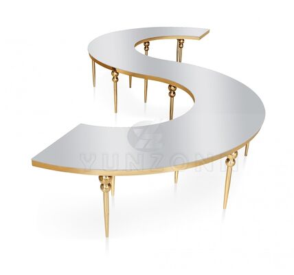 | Nazwa produktu: | Nowoczesny stół jadalny w kształcie S Krzesło zestaw Restauracja Ślub Szkło Metalowe meble hotelowe do użytku na zewnątrz sali |