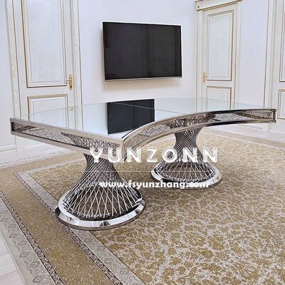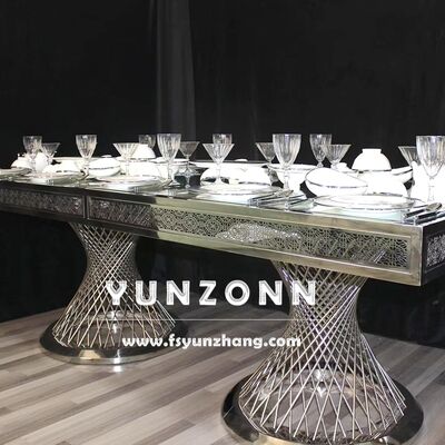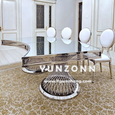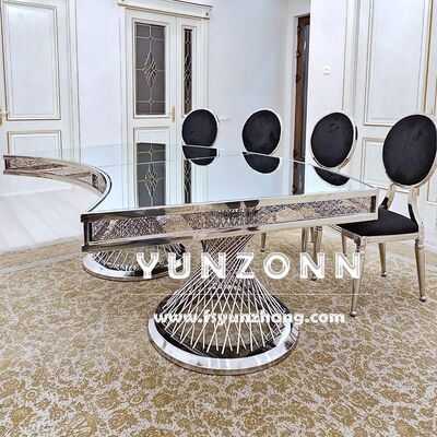 | Nazwa produktu: | Stół jadalniany Nest Base z podwójnym postumentem i blatem ze szkła lustrzanego, złote dekoracje na wesela i hotele |
