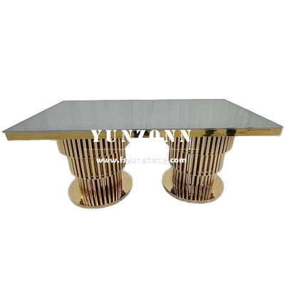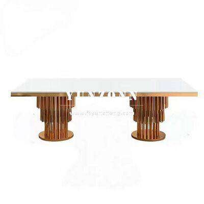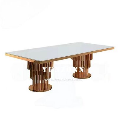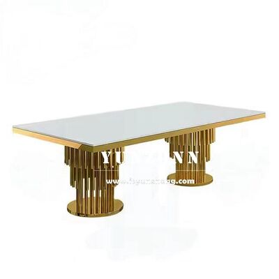 | Nazwa produktu: | Nowoczesny zestaw stołu jadalnianego ze stali nierdzewnej w kolorze złotym z podstawą pedestal do bankietów plenerowych, wesel i wydarzeń hotelowych |