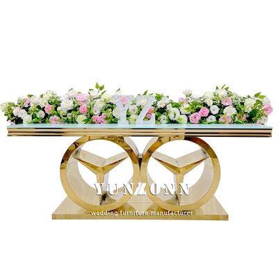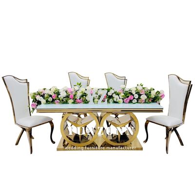 | Nazwa produktu: | Nowoczesny złoty prostokątny stół jadalny z bazą Benz Luksusowe meble ślubne na imprezy zewnętrzne i hotelowe Szkło/MDF |