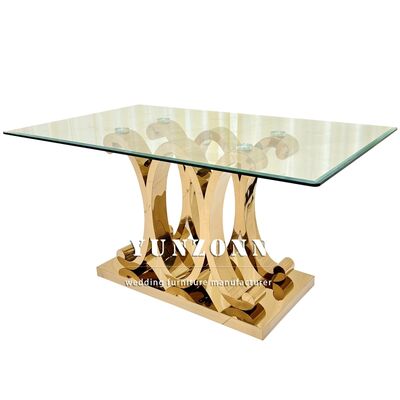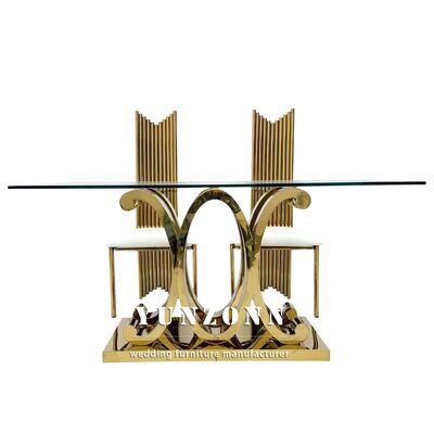| Nazwa produktu: | Luksusowe zestawy stołów jadalnych ze stali nierdzewnej w kolorze złotym dla nowożeńców na wydarzenia ślubne i do hoteli |