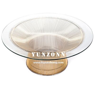 | Nazwa produktu | Luksusowy stolik kawowy w stylu mid-century modern, okrągły, z blatem ze szkła hartowanego i metalową podstawą z drutu |
