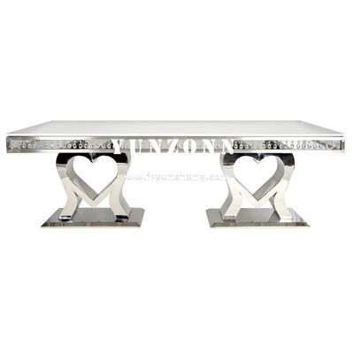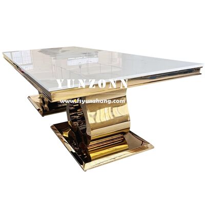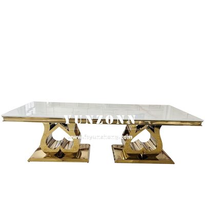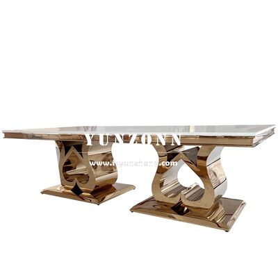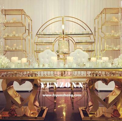 | Nazwa produktu: | Gorąca wyprzedaż Luksusowy złoty stół weselny ze stali nierdzewnej Nowoczesny design podstawy w kształcie serca do jadalni, na zewnątrz, do hotelu i salonu |