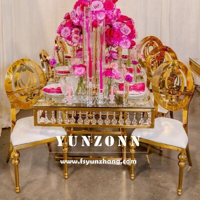 | Nazwa produktu: | Yunzhang Furniture Złoty Stół Bankietowy ze Stali Nierdzewnej i Kryształu Luksusowe Stoły i Krzesła Weselne na Sprzedaż |