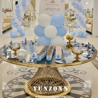 | Nazwa produktu: | Luksusowe meble imprezowe złota stal nierdzewna szklana siatka okrągłe stoły bankietowe na wesele |