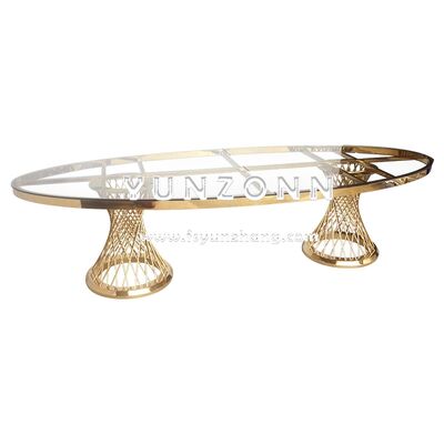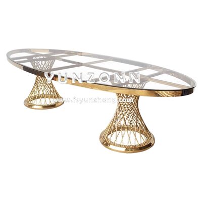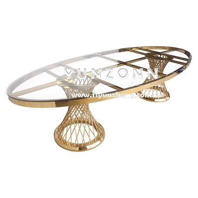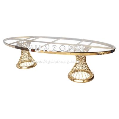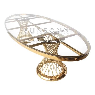 | Nazwa produktu: | Nowoczesne elementy centralne ze stali nierdzewnej do restauracji Stół jadalny Owalne szkło w stylu luksusowym dla hoteli weselnych na zewnątrz |