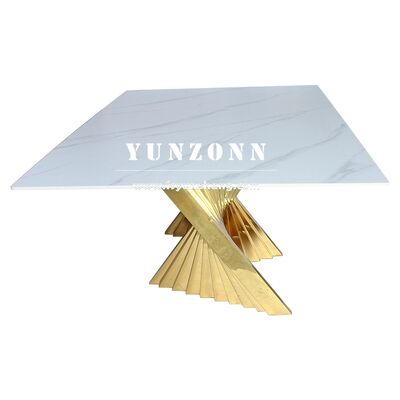 | Nazwa produktu: | Luksusowy, wysokiej jakości złoty/srebrny stół weselny ze stali nierdzewnej z blatem ze szkła hartowanego |