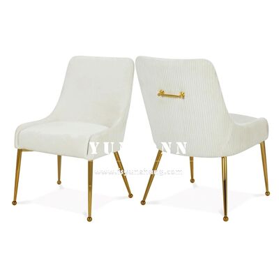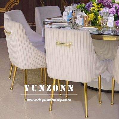 | Nazwa produktu: | Luksusowy hotelowy złoty stal nierdzewna rurowy pikowany uchwyt linia oparcia beżowy aksamit tapicerowane krzesła do jadalni |